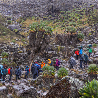 DAY 6: We trek to Barafu Camp, where we prepare for our final ascent to the summit. Today’s hike will take us to Barafu Camp, located at an altitude of 4,673 meters. We will rest and prepare for our final ascent to the summit, which will begin around midnight.